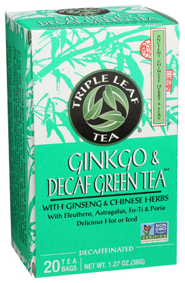 Now you can enjoy the benefits of gingko, green tea and Chinese herbs without all the caffeine! Our green tea is decaffeinated using a carbon dioxide effervescent process to produce a decaffeinated green tea with a smooth and mild flavor. Carbon dioxide occurs naturally in air. It gives carbonated mineral waters their fizz. This tea is made from gingko and decaffeinated green tea along with a blend or revered Chinese herbs including ginseng, eleuthero (commonly called “Siberian ginseng), astragalus, poria, fo-ti and licorice root. Chinese herbalists considered them to be beneficial herbs that helped lift spirits (chi). Gingko has been cultivated in China for ages. The gingko is estimated to be 270 million years old. Gingkos are long-lived, with some trees said to be more than 2,500 years old. Enjoy this delicious tea hot or iced.